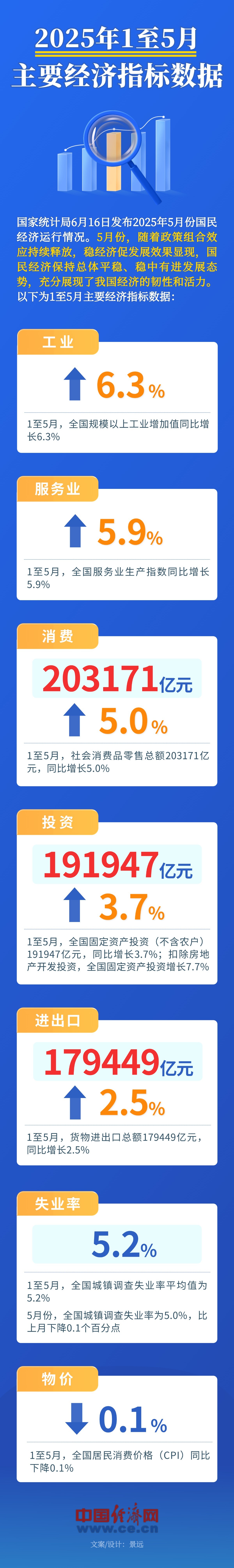 稳经济促发展效果显现!一图速览1至5月主要经济指标数据